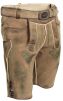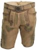 Die kurze Lederne hat einen geknöpften Schrittlatz, wird mit Gürtel plus Schnalle geliefert, hat zwei Einschubtaschen vorne, eine Messertasche seitlich, sowie eine offene Gesäßtasche. Zu einem echten Unikat wird diese Lederhose durch die aufwendige Plattstickerei in hellgrün, sowie den echten, geschliffenen Büffelhornknöpfen.