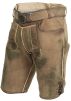 Echte Ziegen-Lederhose die ausschließlich mit naurreinen Gerbstoffen bearbeitet wurde. Die Einfärbung von Hand mit natürlichen Holzfarbstoffen macht diese Lederhose zu einem Kleidungsstück der Extraklasse.