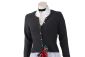 Trachtenjacke ist kurz geschnitten, tailliert und hat hinten am Rückenende 2 Seitenschlitze für eine ideale Passform. Die Knopfleiste zieren sechs kleine, halbrunde Silberknöpfchen.
